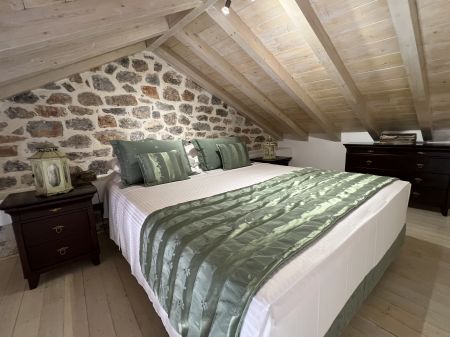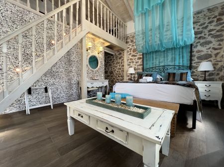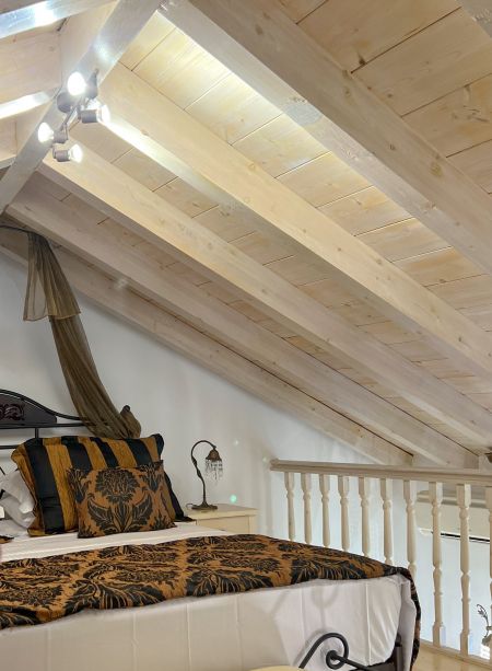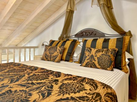 Perfect for families or small groups, this expansive double/quadruple suite is spread across two levels. It features a master bedroom in the attic with a king-size bed (180cm), while the living room on the ground floor includes a comfortable sofa that unfolds into a double bed, accommodating two additional guests.