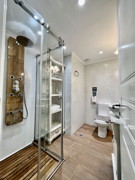 Unwind in property’s sauna,gym and Jacuzzi—an ideal spot to enjoy a glass of champagne. The suite also offers a fully equipped kitchen, a welcoming coffee and tea tray, and a full bathroom.