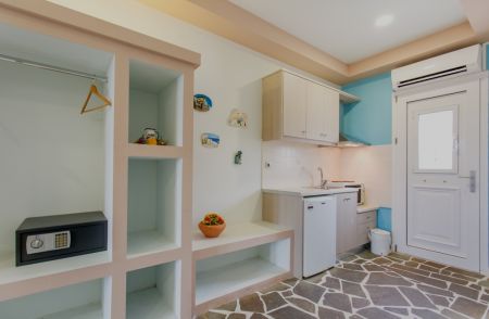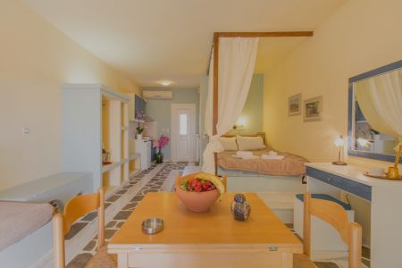 Το κάθε studio/διαμέρισμα διαθέτει σύγχρονες ανέσεις, περιλαμβάνει άνετα κρεβάτια και ντουλάπες, πλήρη κουζίνα , Τ. V. κλιματισμό, ασύρματο δωρεάν internet , λουτρό, ζεστό νερό, ατομική βεράντα με θέα στη θάλασσα και άνετο χώρο πάρκινγκ.