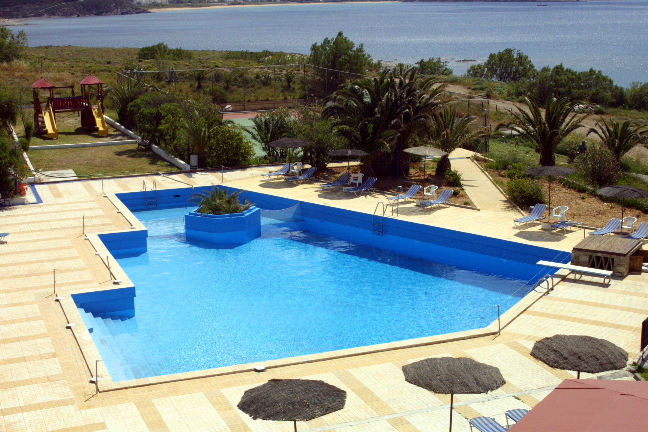 Τα μεγάλα άνετα σαλόνια μας, το άνετο πάρκιν, τα εστιατόρια μας με θέα το Αιγαίο, η πισίνα, το πιάνο – μπαρ, το γήπεδο τένις, η παιδική χαρά και η καλύτερή μας διάθεση για την άψογη σας εξυπηρέτησή θα συμπληρώσουν το ιδανικό σκηνικό των διακοπών σας.