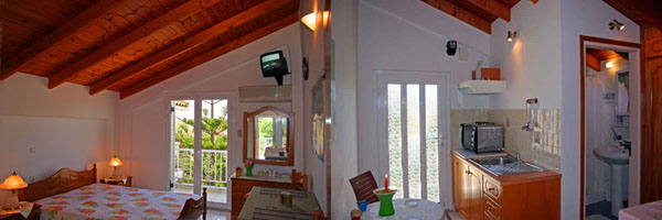 Οι  Γκαρσονιέρες έχουν όλες μπαλκόνι που βλέπει στον Κήπο μας, διαθέτουν άνετη πλήρως εξοπλισμένη κουζίνα με οικιακά σκεύη και ψυγείο, τουαλέτα, άνετη ευρύχωρη κρεβατοκάμαρα, κατάλληλη για 4 άτομα .
